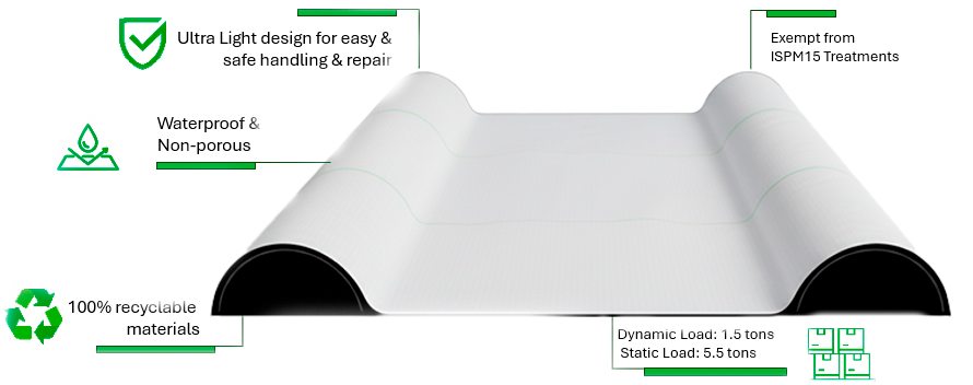 Yes. It’s made from 100% recycled materials, as well as being recyclable at the end of its useful life, thereby supporting a circular economy. For every six flex-pallets™ used, 1 fully mature tree is spared. By significantly cutting fuel consumption and allowing for more efficient shipments, it also helps lower the carbon footprint of your entire supply chain.