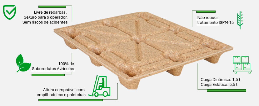 Ao transformar subprodutos agrícolas em um palete durável, você reduz ativamente o desmatamento, elimina a poluição plástica e apoia uma economia circular a cada remessa.