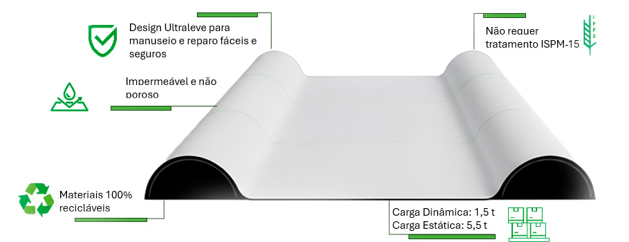 Otimizado para transporte o palete flexível Palletech tem um design ultraleve, otimizado para reduzir significativamente os custos de frete, tanto para remessas de saída quanto para logística reversa. Menos peso significa menor consumo de combustível e uma pegada de carbono reduzida por viagem.